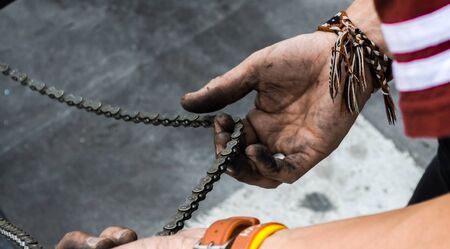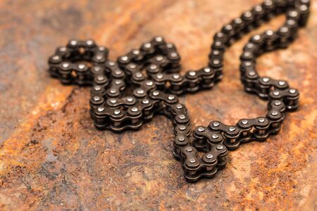 Rusty motorcycle chain. Old motorcycle chain with rust.