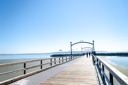White Rock Pier and the semiahmoo bay inland waters in Surrey, BC, Canada