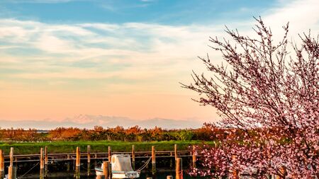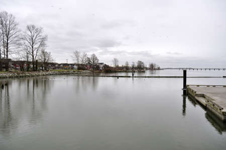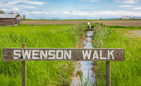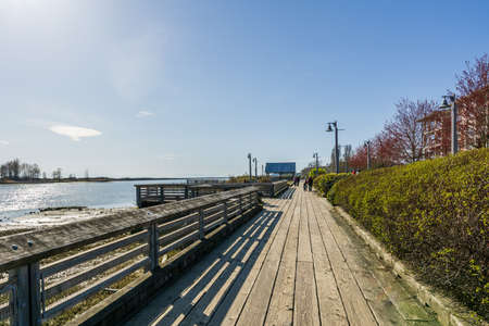 Garry Point Park viewpoint coastline in springtime. Richmond, BC, Canada.