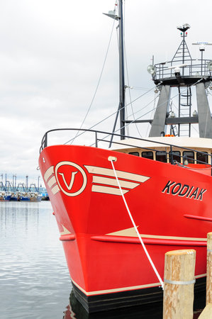New Bedford, Massachusetts, USA - November 12, 2017: Commercial fishing vessel Kodiak docked in New Bedford harbor