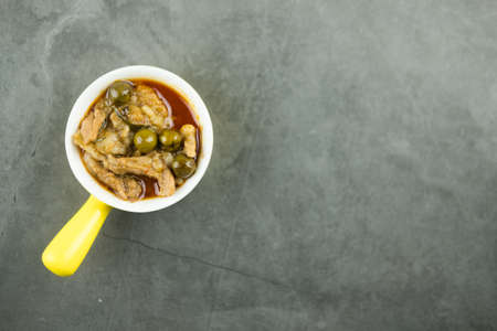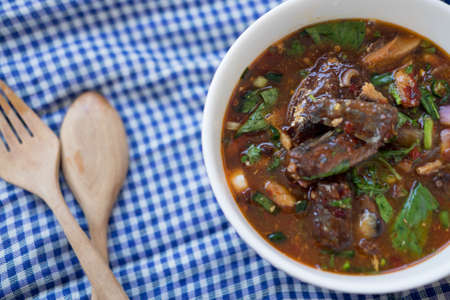 Preserved vegetables herbed soya beans with minced shrimp and pork in coconut milk, Thai food