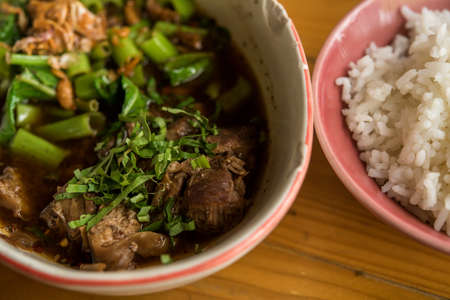 Wide rice noodles pork in thick gravy sauce Thai Style food called Rad-Na. Thai dishes