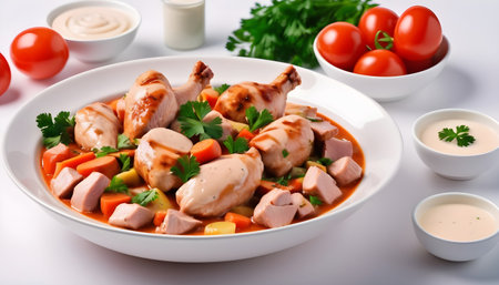 chicken stew with tomatoes, onions, carrot and potatoes