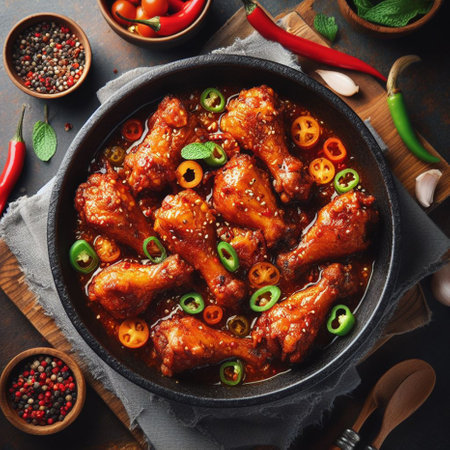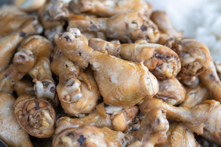 Korean food culture. Chicken marinated in spices. Soy sauce-based seasoning