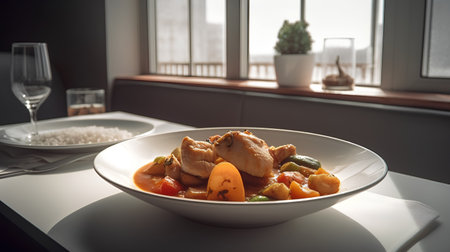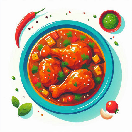 An eye catching illustration of Chicken curry on bowl. Created using Generative AI tools.