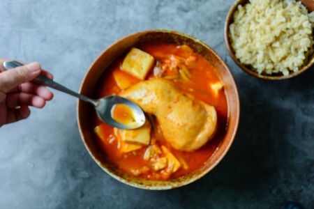 Korean traditional Kimchi soup with chicken and soft tofu