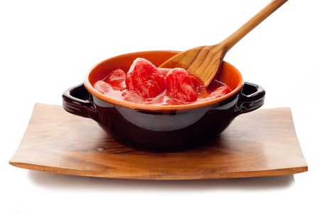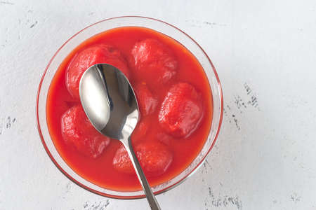 Bowl of canned tomatoes on the table