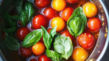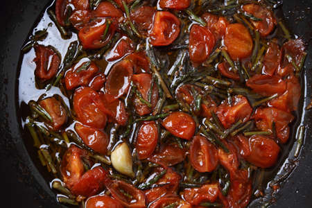 Boiling pachino variety tomatoes with eggplants