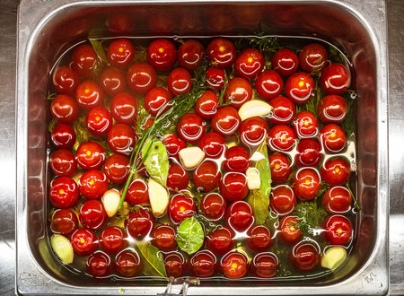 pickled cherry tomatoes in steel container