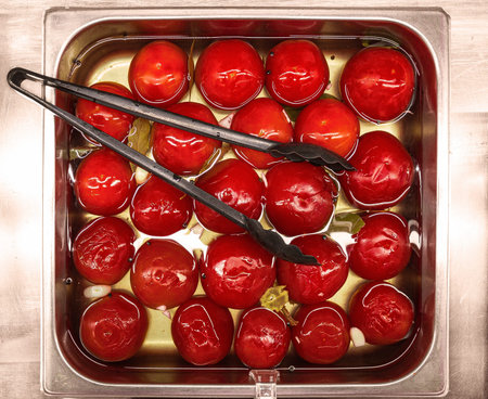 pickled tomatoes in steel container