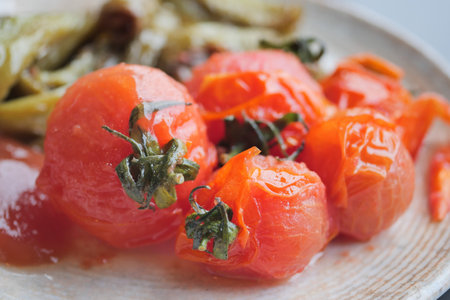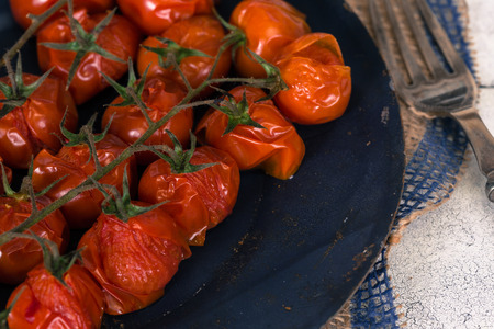 Cherry tomatoes cooked in the oven on the table