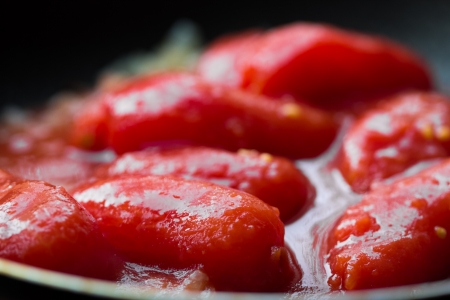 close up of rustic italian peeled red tomato