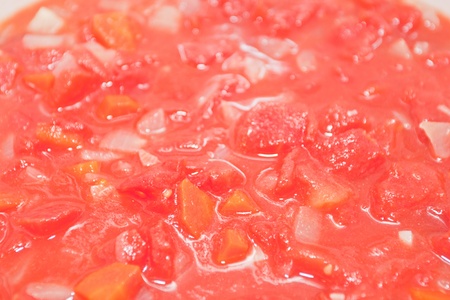 Diced tomatos mixed with onion and carrots in a pot