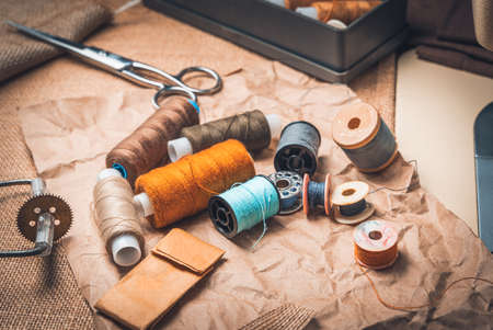 Colorful leather thread working craft working with metal tool hobby work