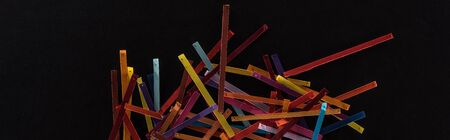 Top view of colored wooden sticks with customizable space for text. Copy space.