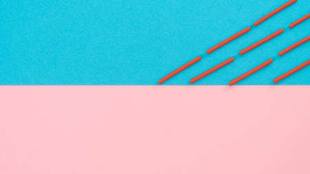 Heap of colorful plastic drinking straws on Colored background, flat lay. Copy Space for text.