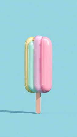 A vibrant image of a multi-colored popsicle against a bright blue backdrop, perfect for summer.