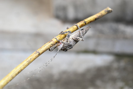 Close up of Acrida ungarica. Species of grasshopper, typical of the Acridini tribe