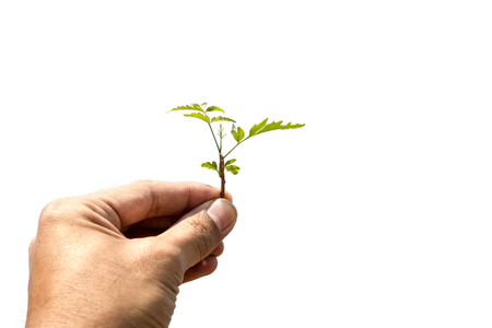 Young plant in hand isolated on white background with clipping path.