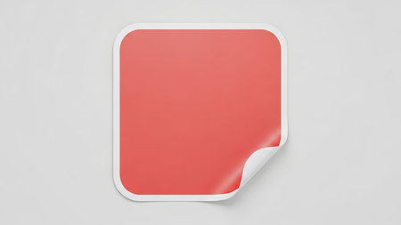 showing blank rounded square red sticker with curled corner on white background for copy space. resolution use.