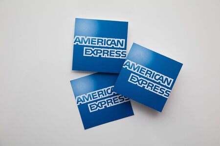 LONDON, UK - January 15th 2020: American express brand logo printed onto paper
