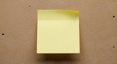 A single, unwritten yellow sticky note is attached to a brown, textured background with visible imperfections.