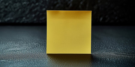 Sticky note, wall and mockup space with paper for reminder, tasks or agenda on a dark background