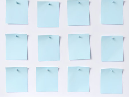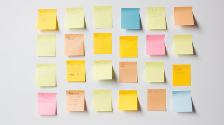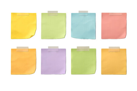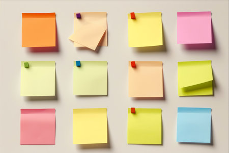 A vibrant arrangement of pastel sticky notes on a clean white background, perfect for organization and creative projects, adding a cheerful touch to any workspace.