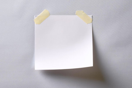 Colored Blank empty Sticky Sticker Pasted On White isolated Wall, Creative copy Space For Text