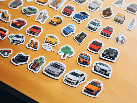 Creative sticker sheets featuring playful designs and glossy textures in vibrant colors