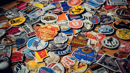 A lively display of colorful stickers and graffiti covers a wall, reflecting the creativity and energy of urban street art culture. Each piece tells a unique story and adds to the vibrant atmosphere.