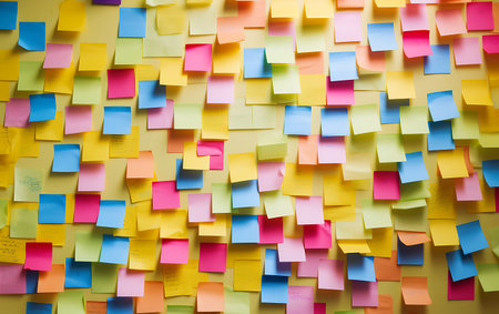 Vibrant sticky notes arranged on a pale blue backdrop, creating a visually captivating display