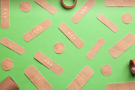Set of medicine plaster isolated on white background. First medical aid. Medical bandage.