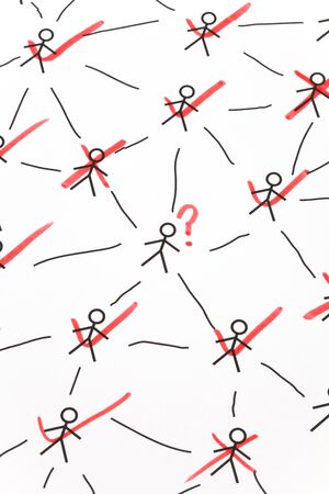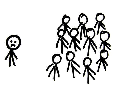 Plastic figures - crowd of people and a lonely figure of a different color - bullying or depression concept