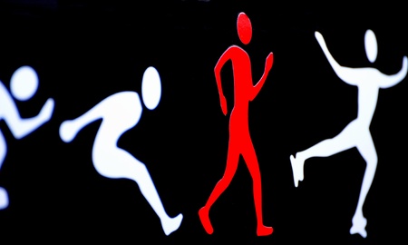 Close-up Of A Running Person Symbol Leaning On White Wall