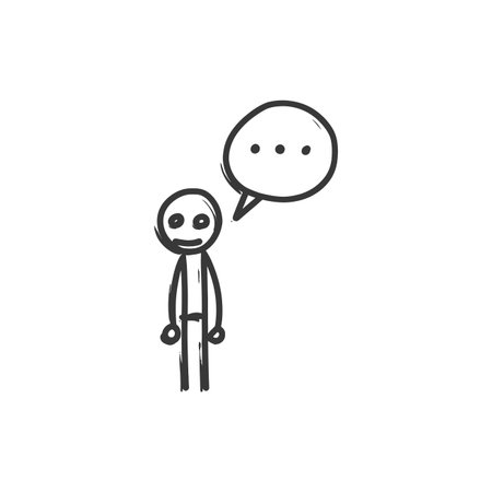 This charming hand-drawn stick figure features a joyful expression and open arms, symbolizing happiness and positivity against a clean white backdrop. Perfect for conveying cheerful themes.