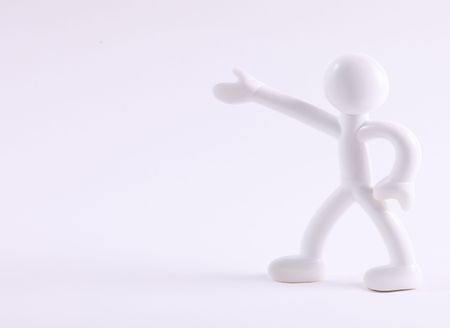 A man made from black plasticine holding a graph with an arrow pointing up on white background, aligned to the right.