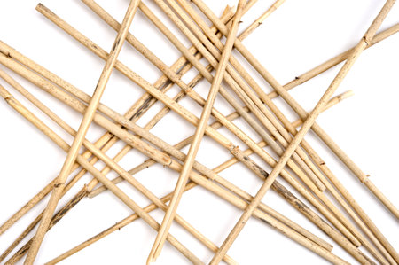 Pile of dried reeds on white background.