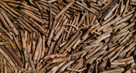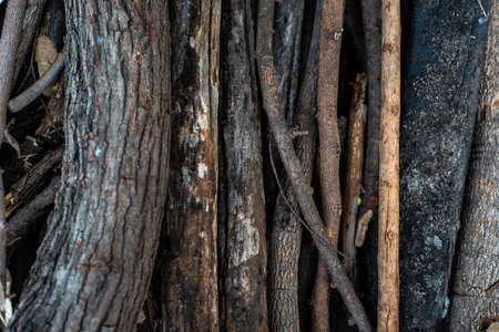 Background of old dry branches of a fallen tree