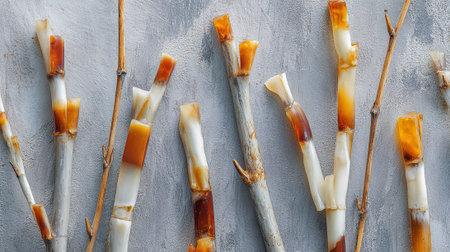Modern minimalist background with licorice sticks aligned neatly.