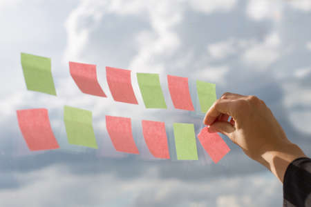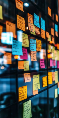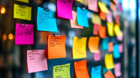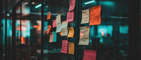 Colorful Sticky Notes on a Glass Window for Effective Business Planning and Creative Brainstorming