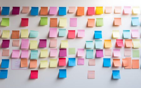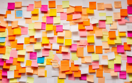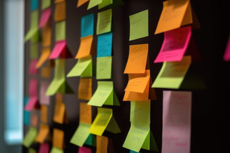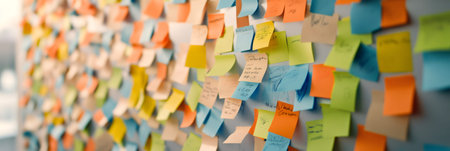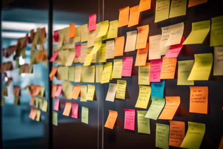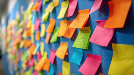 A vibrant display of sticky notes in a modern office, highlighting collaboration and planning efforts. This image captures the essence of teamwork and creativity in project management.