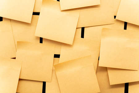 a lot of light yellow stickers for notes on a yellow background, selective focus