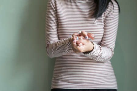 Close-up of finger with symptom pain and numbness at fingertips, Beriberi at hand from working.