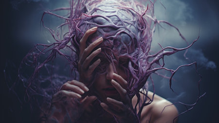 A person fighting through various mental health conditions expressing deep emotions. Concept Mental health struggles, Emotional expression, Inner turmoil, Vulnerability, Personal growth