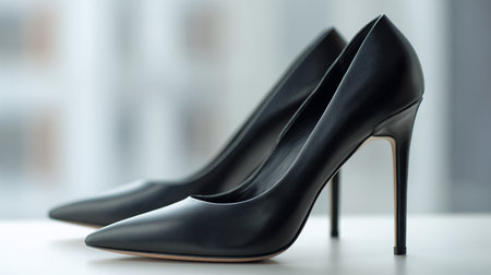 Stunning monochrome image of elegant high heels showcased under soft lighting, highlighting their sleek design and shiny finish. Perfect for fashion-related themes.