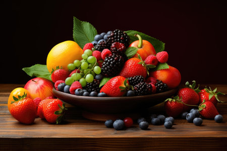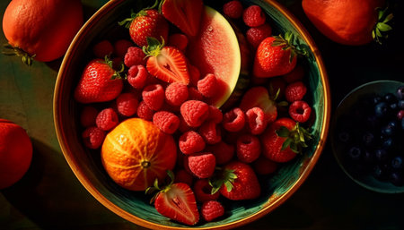 Fresh berry fruit bowl, healthy gourmet dessert generated by artificial intelligence