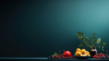 Happy yalda night, winter solstice festival, The birth of the sun or the moon, Copyspace background for text, grapes pomegranate watermelon