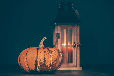 Pumpkin in darkness. Halloween mood.