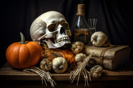 Spooky Halloween Still Life: A Pumpkin Rises Among Bones - AR 3:2